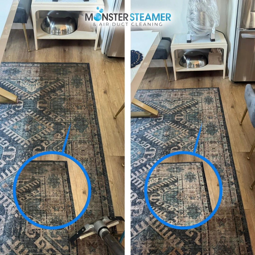 At Monster Steamer Carpet Cleaning, we bring over 15 years of trusted professional area rug cleaning expertise to every job. Our IICRC-certified technicians use eco-friendly, no-residue products and advanced techniques that lift stains and odors without harsh chemicals, safe for kids and pets.